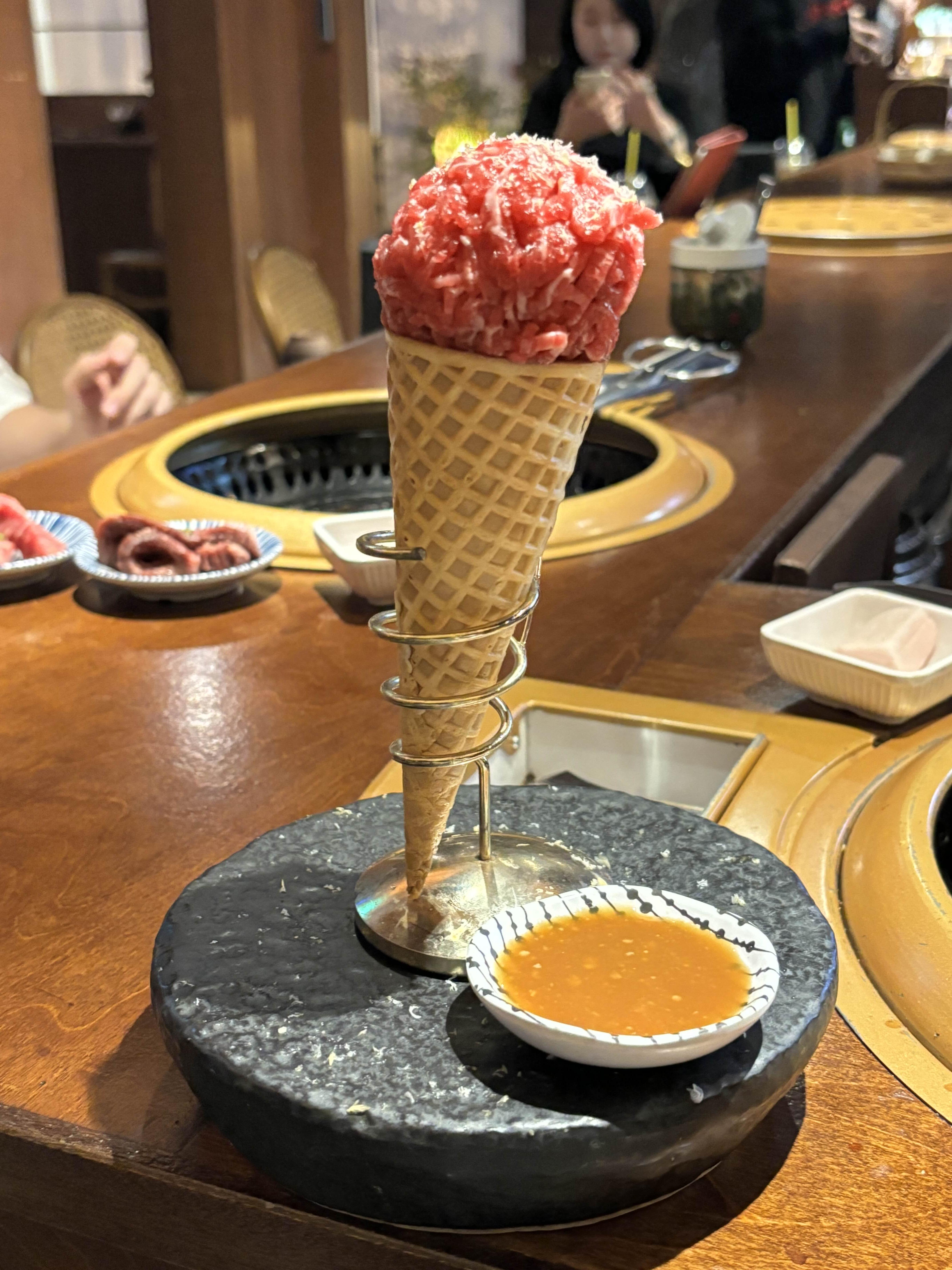 육회 트러플향이 나면서 너무 맛있었다,, 저 아이스크림 콘은 모양만 예쁘게 한건줄 알았는데 콘에 육회 싸먹으면 완벽💗 또먹고싶은맛